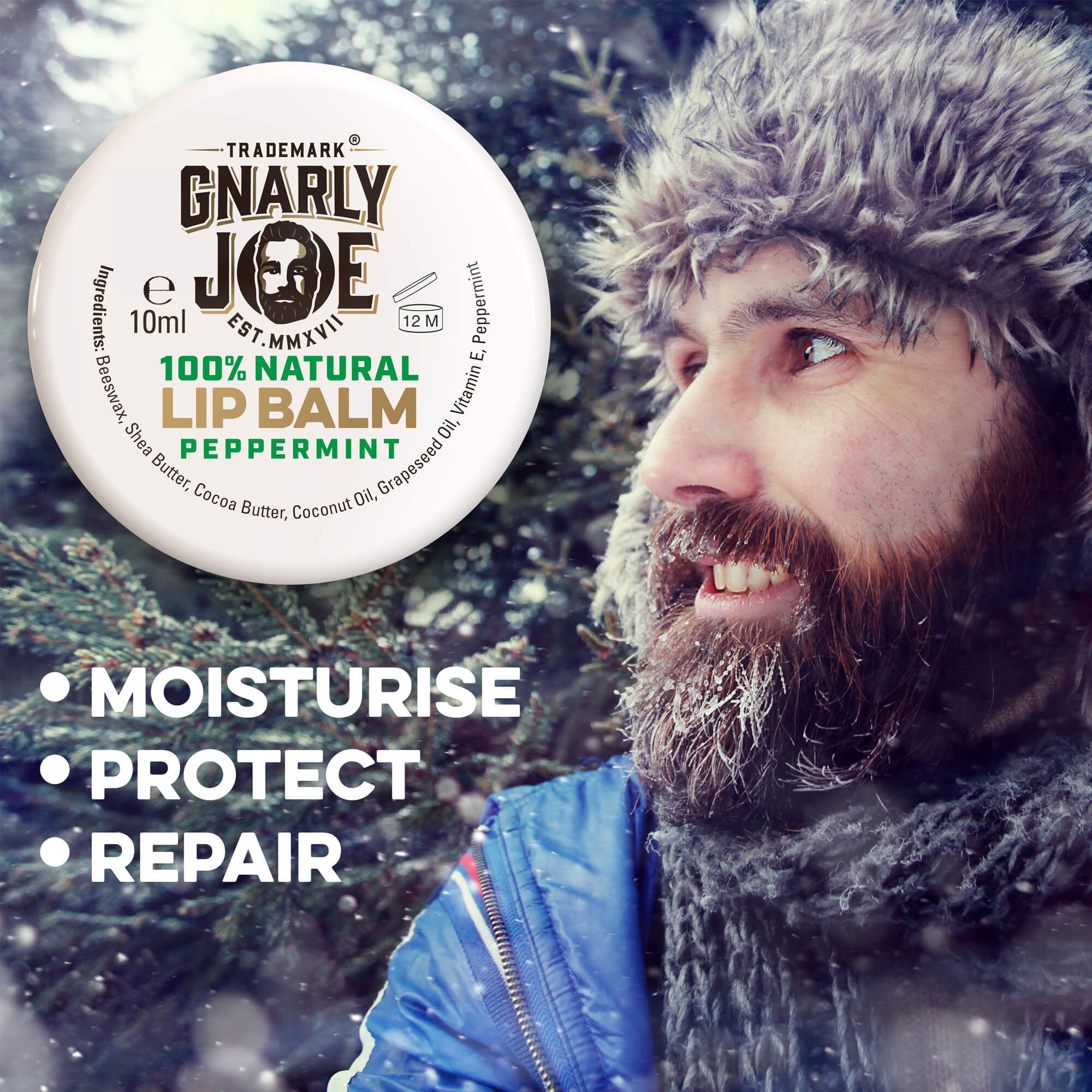 100% Natural Ingredients. Moisturising year-round weather protection for dry lips, with Essential Peppermint Plant Oil. (10ml)