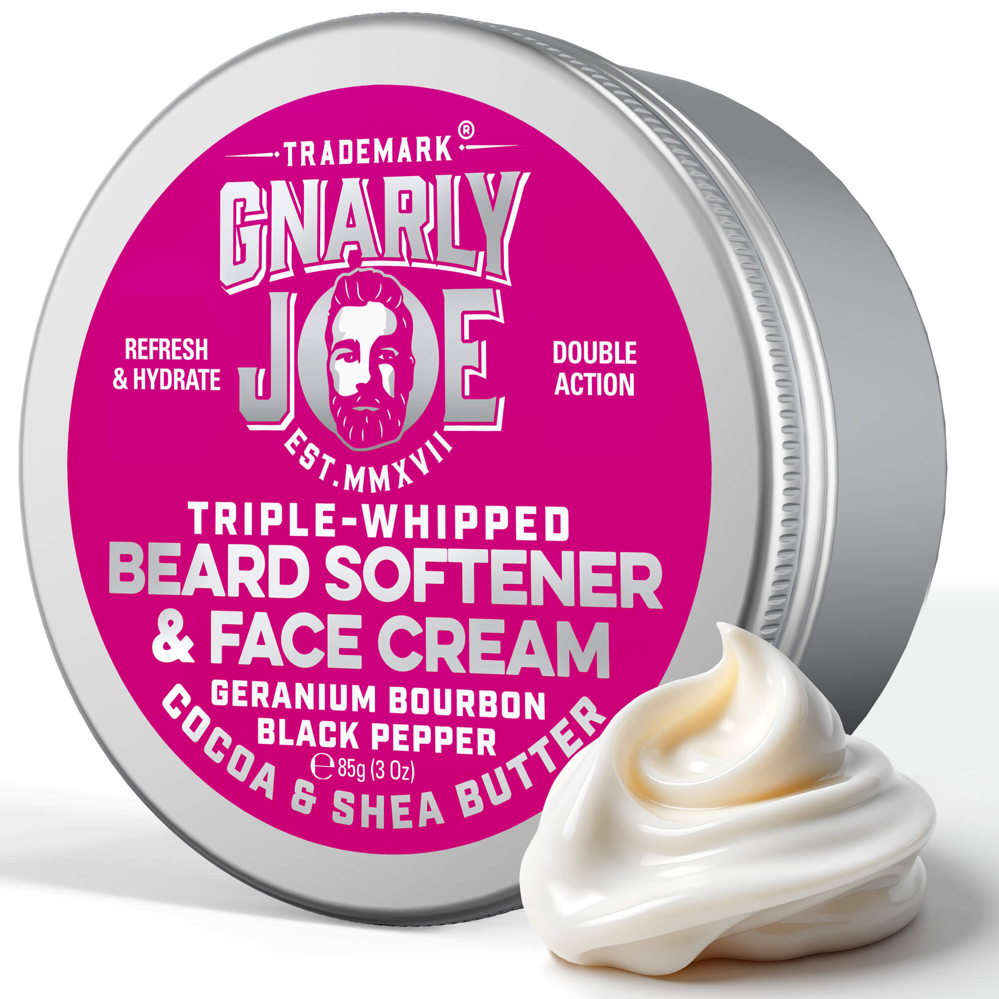 Gnarly Joe® Beard Softener and Face Cream is an extra-thick, double-action solution for men with beards: First, the triple-whipped Cocoa and Shea Butters will moisturise and soften harsh, dry and brittle beard hair. Second, as you massage this concentrated natural cream into your face, it will hydrate your skin, helping to eliminate dry, flaky skin and beard dandruff. Beard Softener can be used throughout the day, but is ideally suited as a leave-in overnight treatment.